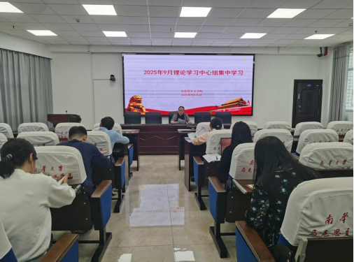 2025年9月25日下午,马克思主义学院党委在红湘校区南华楼1408室开展9月理论学习中心组集中学习,学习主题是“深入学习《习近平谈治国理政》第五卷,深学细悟笃行习近平新时代中国特色社会主义思想,切实把学习成效转化为推动学校高质量发展的强大动力。”