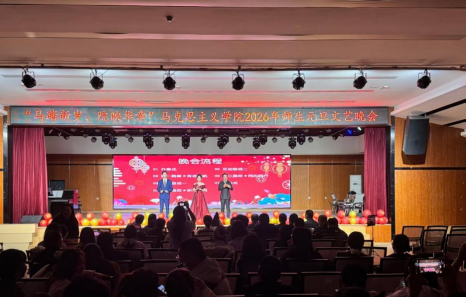 12月25日晚,南华大学马克思主义学院在红湘校区求是园食堂四楼成功举办“马踏新岁,院映华章”师生元旦晚会。学院师生欢聚一堂,共迎2026年马年新春,晚会现场洋溢着喜庆祥和的节日氛围。