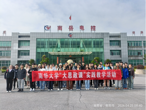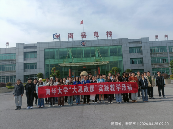 为进一步推动“大思政课”创新,拓展“毛泽东思想和中国特色社会主义理论体系概论”课程实践育人空间,2026年4月25日,南华大学马克思主义学院“毛泽东思想和中国特色社会主义理论体系概论”教研室组织学生前往南岳电控(衡阳)工业技术股份有限公司(简称南岳电控)开展大思政实践教学活动。此次实践教学活动由教研室赵玉华、段红苹两位老师带队,36名学生代表参加。