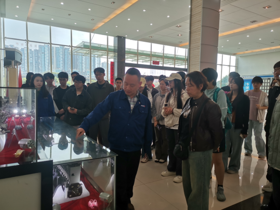 在企业专业人员的带领下,带队老师和学生代表观看了企业宣传片,参观了企业文化墙、专利展示墙、公司智能化装备生产线、研发测试中心和企业在高端装备等领域的创新成果。了解到该企业一直以来以科技自主创新为引领,坚持关键核心技术自主研发,充分展现了衡阳先进制造业在推动新质生产力发展中的生动实践。