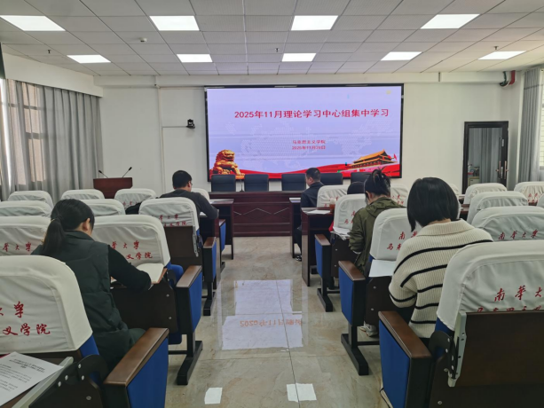 2025年11月28日下午,马克思主义学院党委在红湘校区南华楼1408室开展11月理论学习中心组集中学习,本次学习的主题是“深入学习贯彻党的二十届四中全会精神,深刻领会把握全会提出的一系列重大思想观点、重大战略部署,引领全校上下把智慧和力量凝聚到落实全会作出的各项部署要求上来,扎实推动学校高质量发展”。