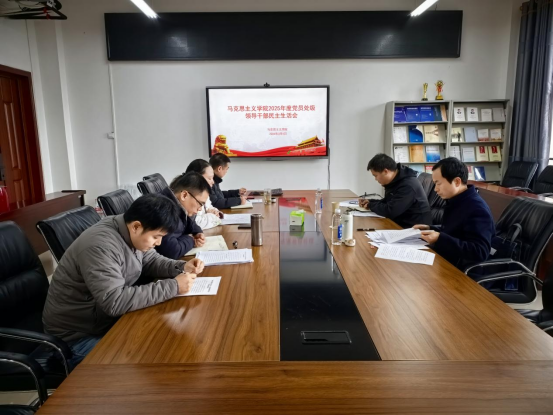 2026年3月5日,马克思主义学院党委班子在雨母校区崇德楼406会议室召开2025年度民主生活会。校党委委员刘文君到会指导并点评,院党委书记何小英主持会议,驻校纪检监察组胡江华出席,全体院领导参会。